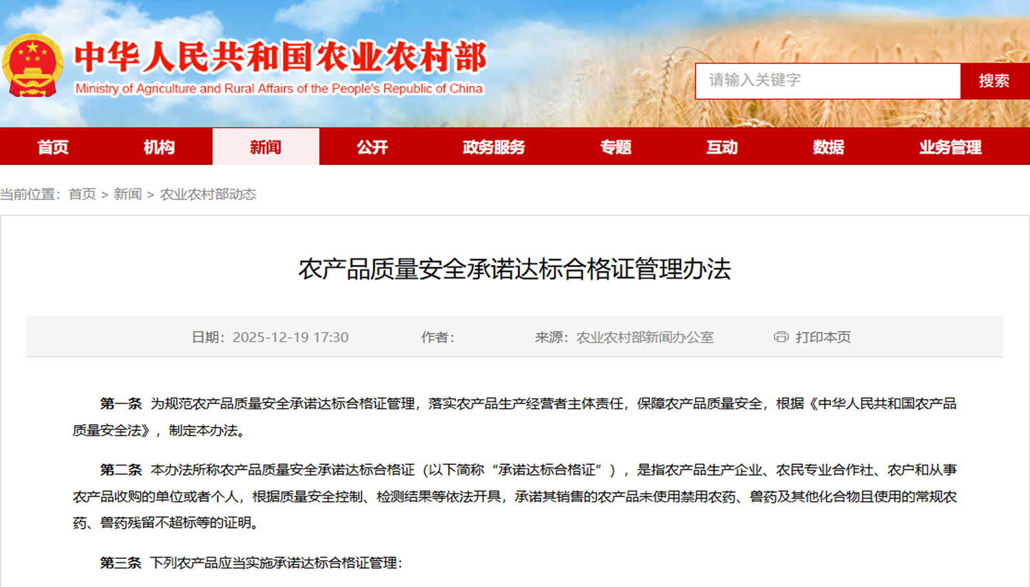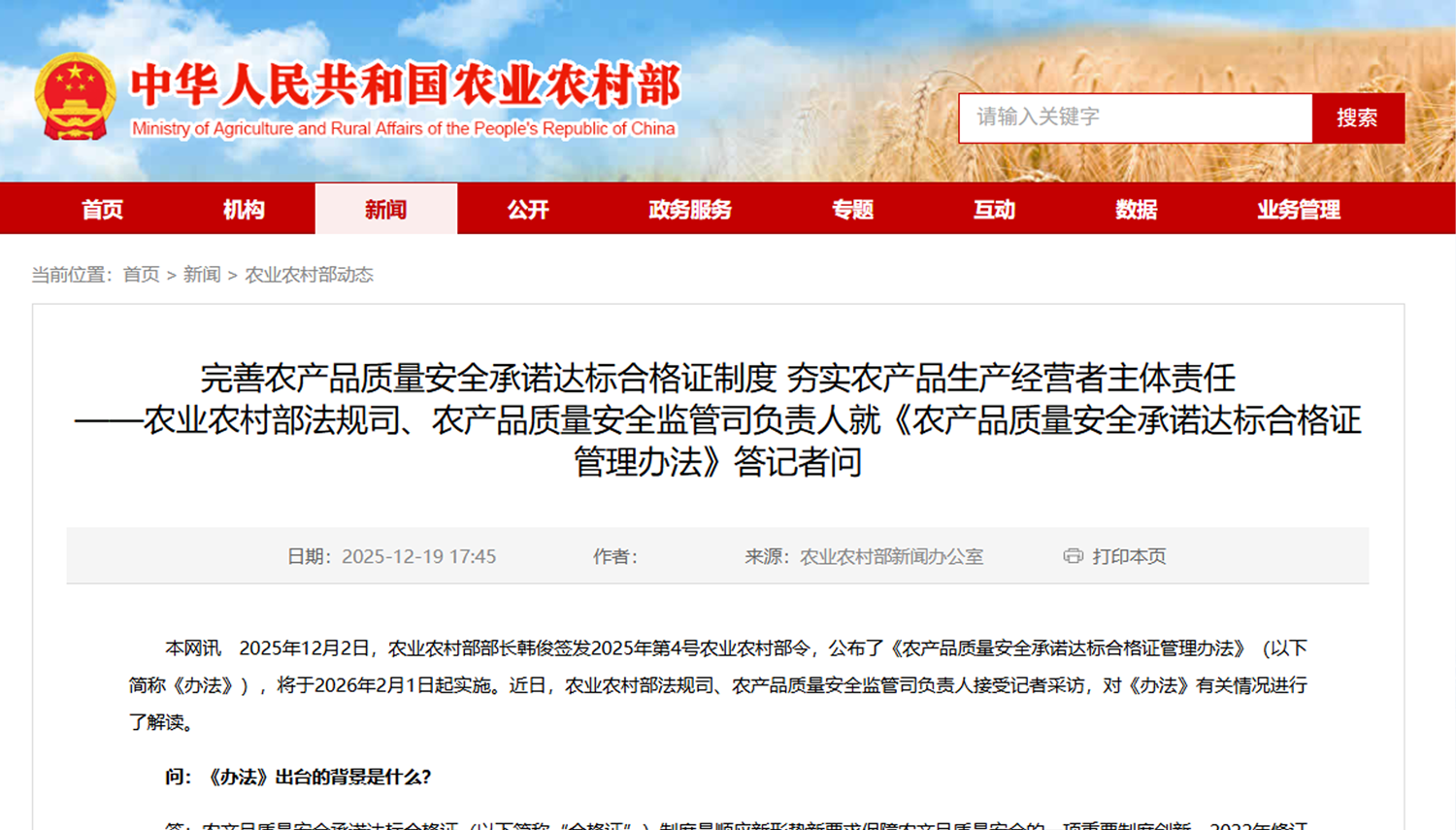 ● 执行总裁岳晓兰当选农业农村部数据标准化技术委员会委员